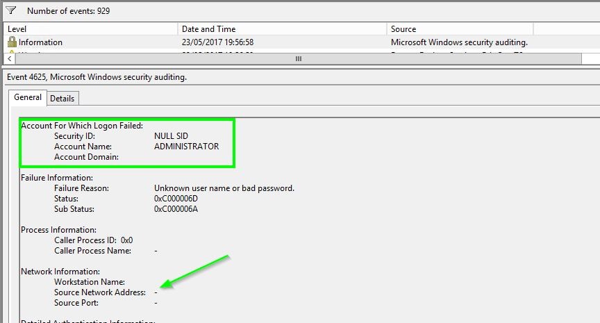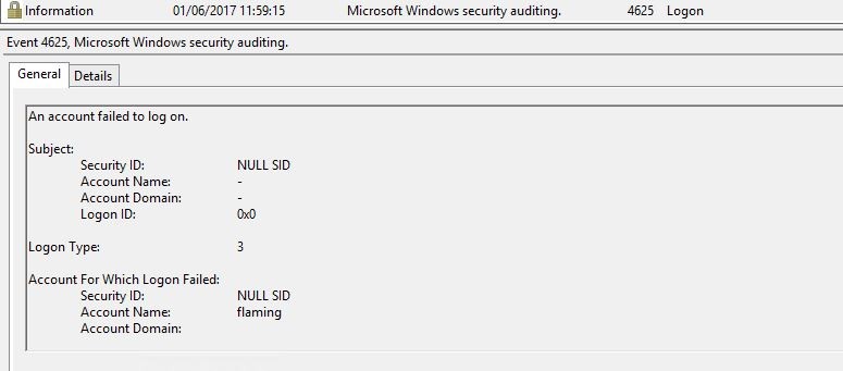 Sur Windows 2012 R2, Microsoft ne nous a pas spécialement aidé car dans le journal de sécurité on détecte bien la tentative de connexion, en revanche l’ip source n’est pas spécifiée (ce n’est plus le cas dans Windows 2016):