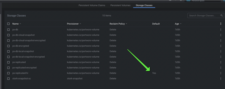 Avant de lacer la commande il faut s’assurer que l’on a déclaré un une classe de stockage persistent par default. Dans mon cas Portworx: