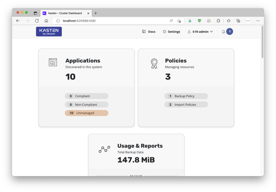 Il permet de réaliser les sauvegardes non seulement des stockages persistants, mais de tout votre déploiement.