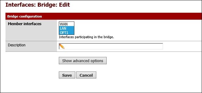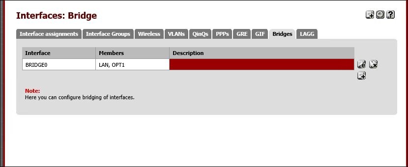 Il reste a bridger l’interface LAN et l’interface OPT1 :