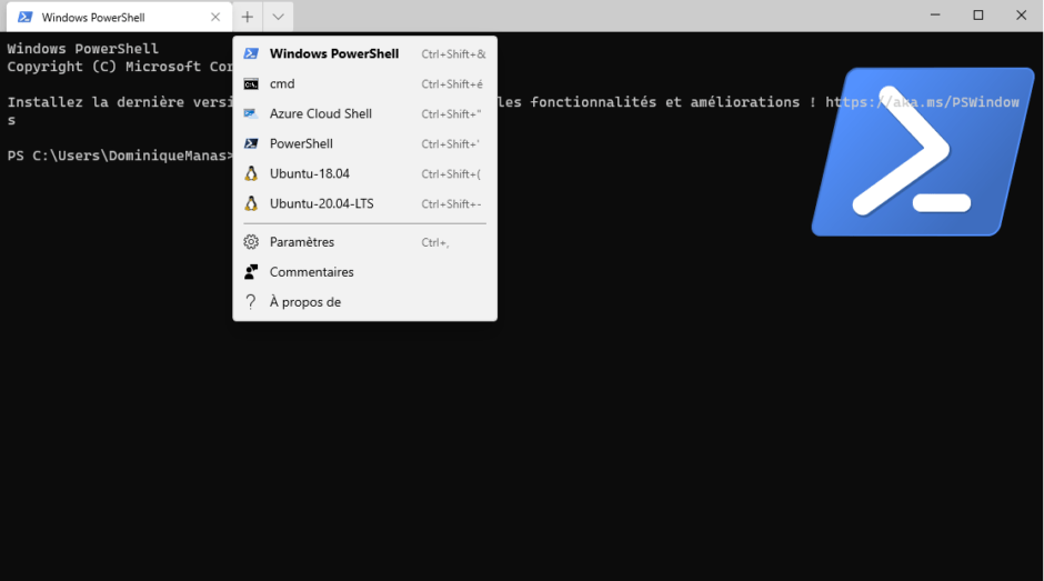 Windows Terminal comprend différents shell comme le Command Prompt, PowerShell mais aussi le sous-système Windows pour Linux (WSL1 et 2 supportés). Une des fonctionnalité clé est la possibilité d’avoir des instances de différence en cours d’exécution dans plusieurs onglets, quelque chose que Windows n’a jamais eu natif avec la ligne de commande avant.